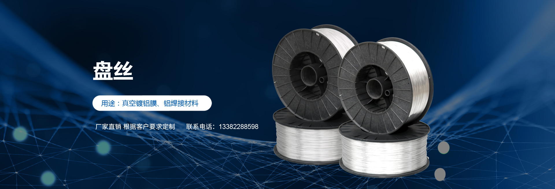 高純度鋁絲:公司主打產(chǎn)品。SGS認(rèn)證產(chǎn)品,適用于真空鍍鋁。純度99.9%。可為客戶量身定做生產(chǎn)的各盤(pán)裝鋁絲。產(chǎn)品應(yīng)用領(lǐng)域十分廣泛,如:真空鍍鋁膜、電器儀表、電子、家電業(yè)、電線電纜業(yè)、建筑裝飾業(yè)、五金裝飾業(yè)、IT電腦業(yè)、廣告裝飾業(yè)、醫(yī)療器械、工藝制品、防腐制品(大型港口、橋梁、碼頭)、食品包裝容器、紡織服裝等。